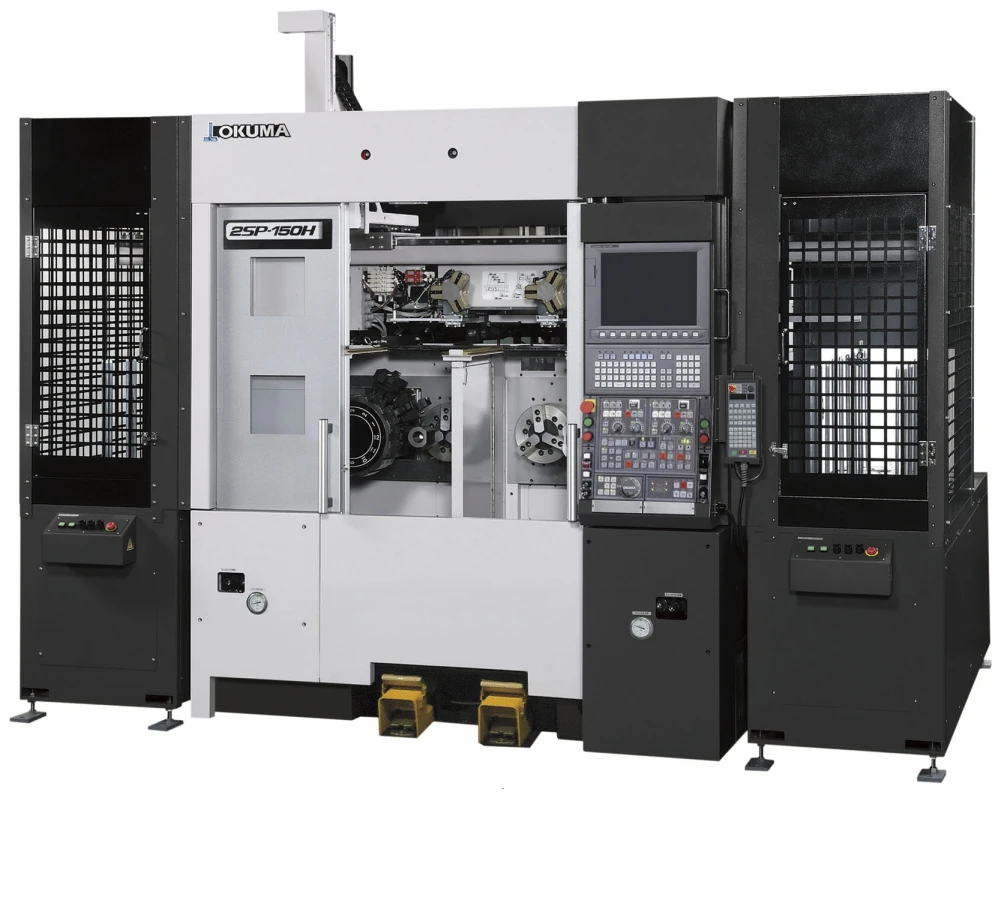 Innowacyjne, skierowane do przodu wrzeciono maszyny z serii Okuma 2SP-H pomogło stworzyć najbardziej przyjazną automatyzacji tokarkę do produkcji małych części. Przez poruszanie wrzeciona na boki i współpracę z ładowarką bramową Okuma (OGL) w linii produkcyjnej, części mogą być automatycznie ładowane i rozładowywane. Niezwykle kompaktowe rozmiary zwiększają wykorzystanie przestrzeni podłoża. Popularne opcjonalne podwójne wrzeciono znacząco skraca czas cyklu. Niezwykle szybki i dokładny przesuwny wrzeciennik pozwala tworzyć precyzyjne części w minimalnym czasie.